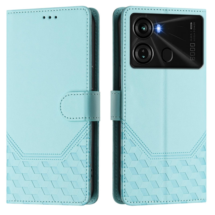 Funda de Cuero Rfid con Relieve en Panal para Teléfono Itel P55 5G (Verde Menta)