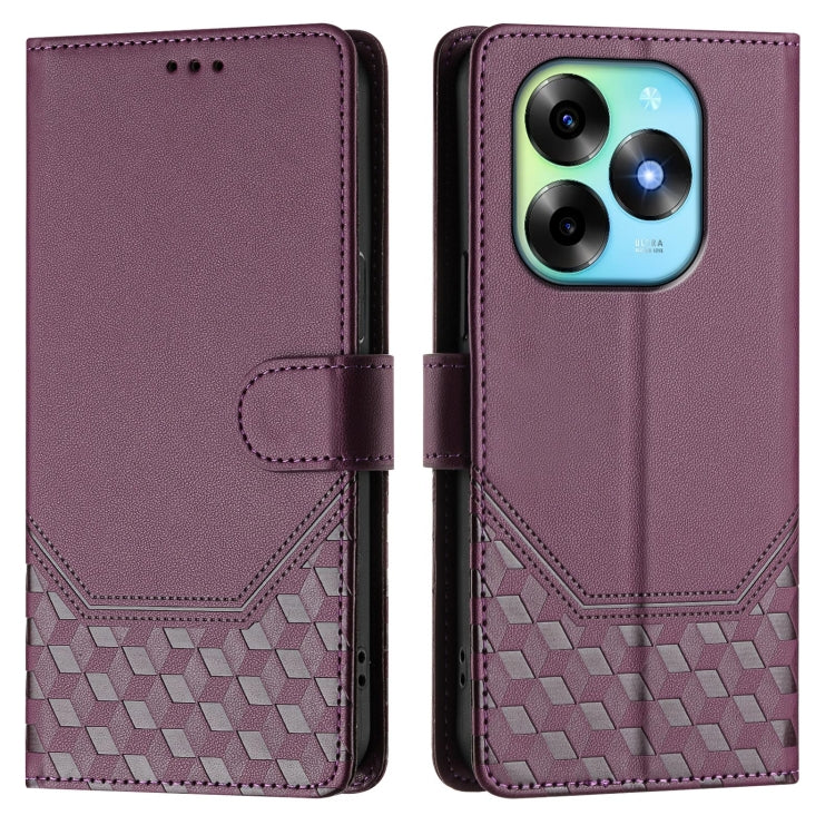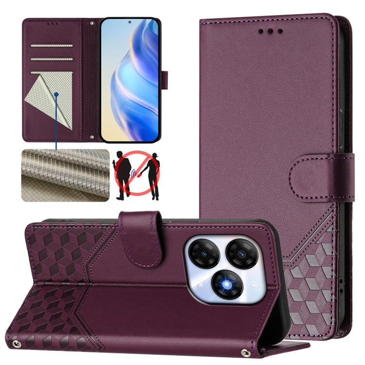 Funda de Cuero Rfid con Relieve en Panal para Teléfono Itel P55 5G (Violeta)