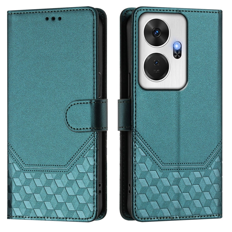 Funda de Cuero Rfid con Relieve en Panal para Teléfono Itel P55 5G (Verde Pavo Real)
