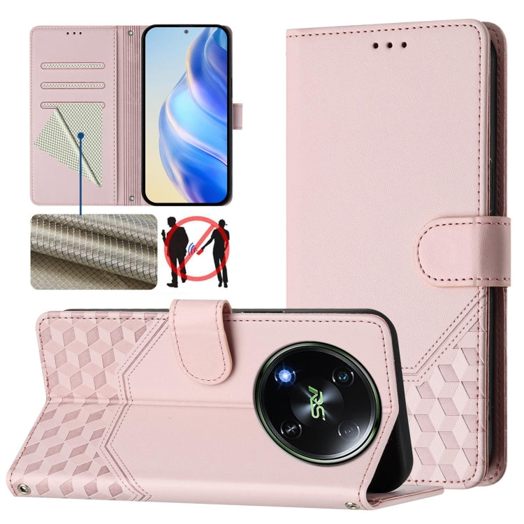 Funda de Cuero Rfid con Relieve en Panal para Itel P55 4G y Infinix Smart 8 (Rosa)