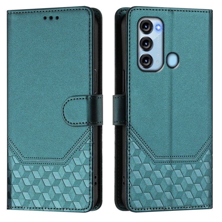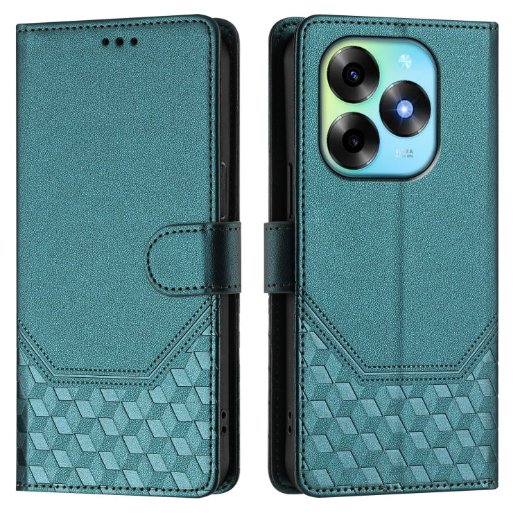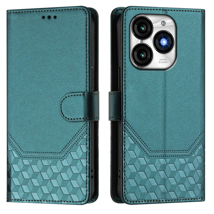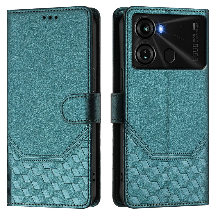 Funda de Cuero Rfid con Relieve en Panal para Teléfono Itel P40 (Verde Pavo Real)