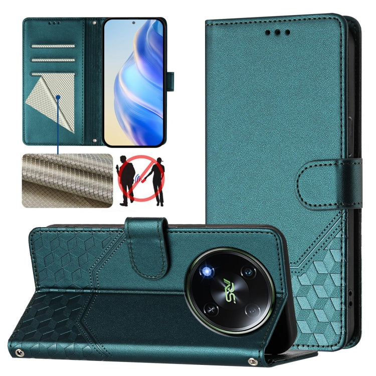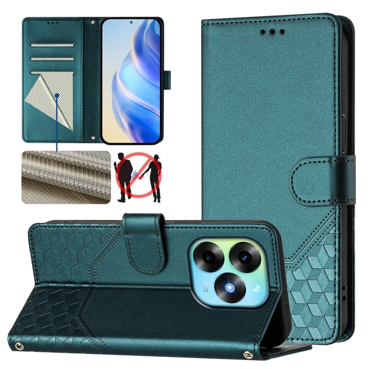 Funda de Cuero Rfid con Relieve en Panal para Itel P55 4G e Infinix Smart 8 (Verde Pavo Real)