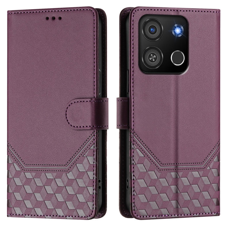Funda de Cuero Rfid con Relieve en Panal para Teléfono Itel A60/A60S (Morado Claro)