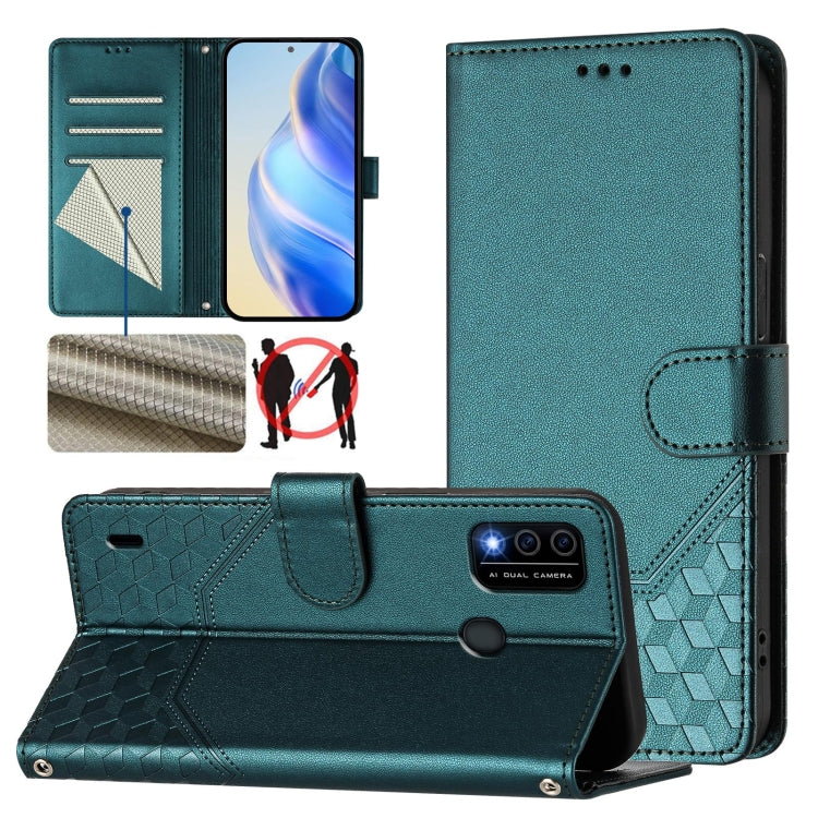 Funda de Cuero Rfid con Relieve en Panal para Oukitel C53 (Verde Pavo Real)
