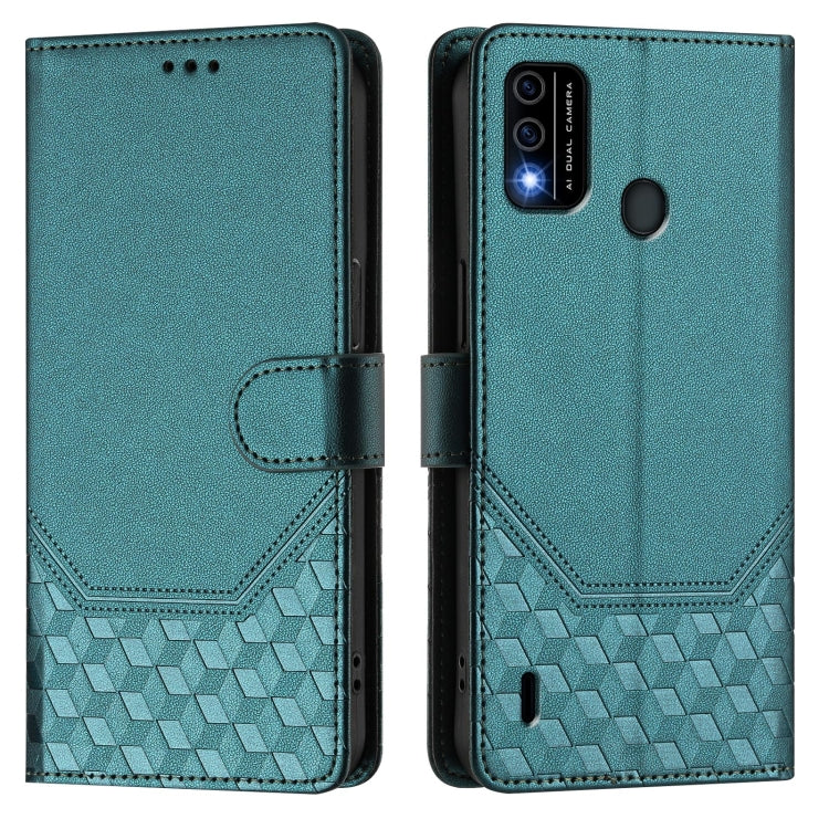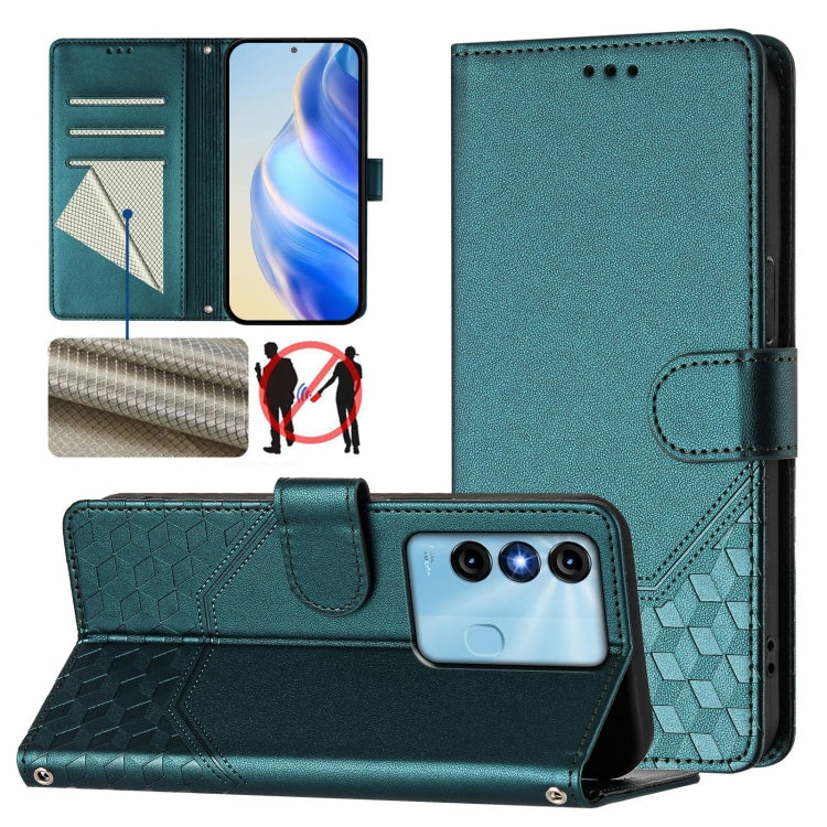 Funda de Cuero Rfid con Relieve en Panal para Teléfono Itel P38 (Verde Pavo Real)
