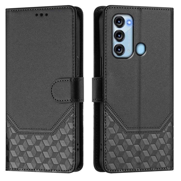 Funda de Cuero Rfid para Teléfono Itel A70 con Relieve en Panal (Negra)