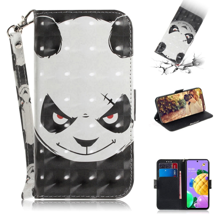 Funda de Cuero Abatible Horizontal para LG Q52 con Dibujo 3D, Soporte, Ranuras y Cordón (Oso Enojado)