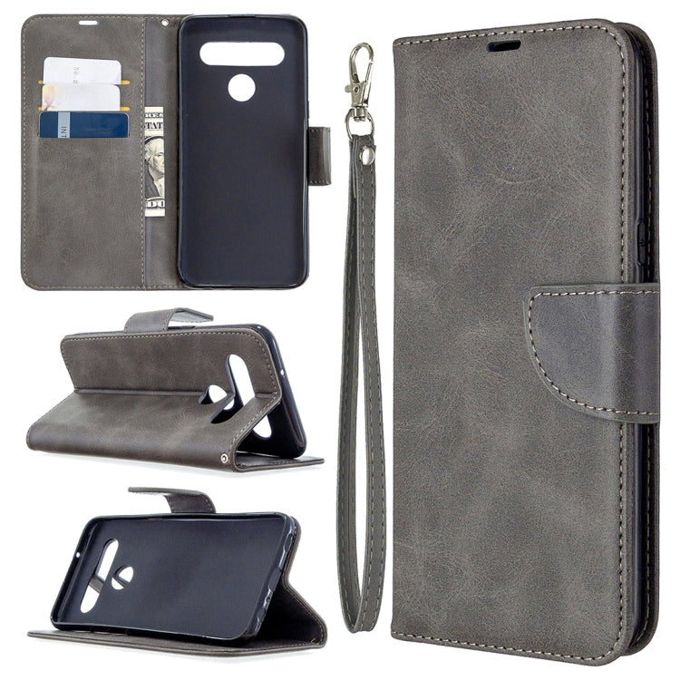 Estuche de Cuero Magnético para LG K51 con Tapa Horizontal, Soporte y Ranuras para Tarjetas (Gris)