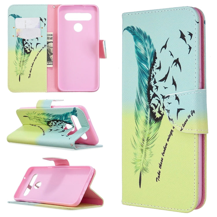 Estuche de Cuero Abatible Horizontal para LG K61 con Soporte, Ranuras para Tarjetas y Billetera (Pluma)