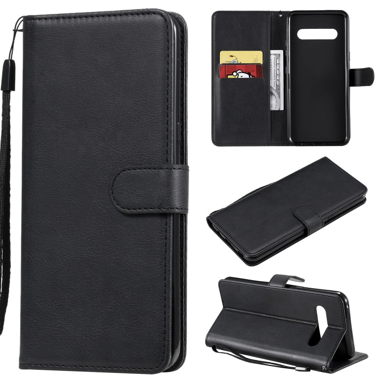 Funda Protectora de Cuero para LG V60 con Tapa Horizontal, Soporte, Ranuras para Tarjetas y Cordón (Negro)
