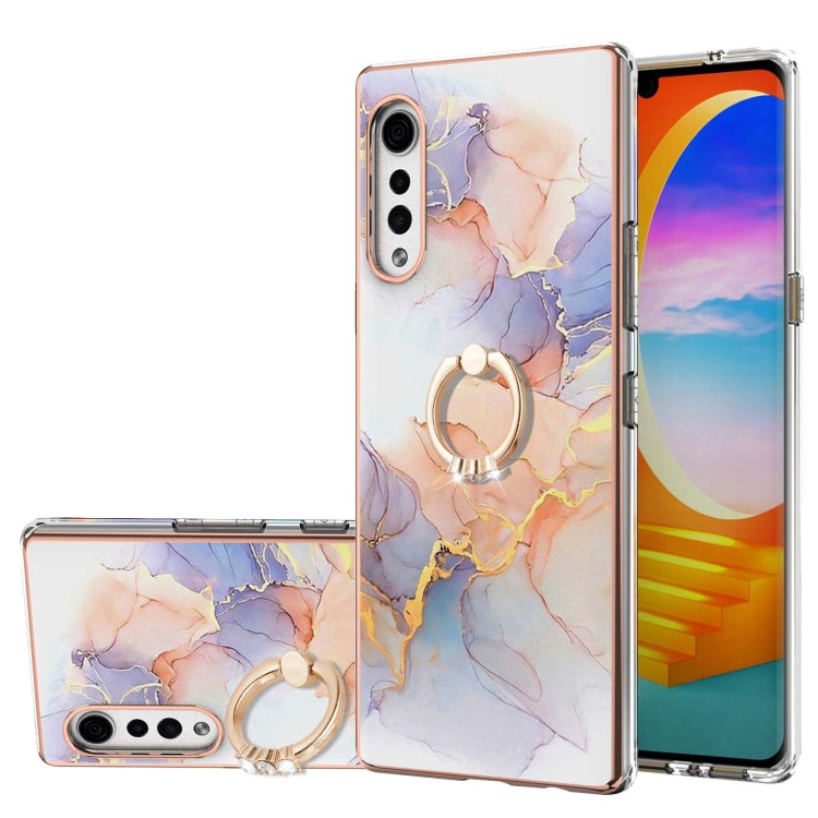 Funda TPU LG Velvet 4G Velvet 5G G9 con Patrón Galvanoplastia y Soporte Anillo (Mármol Blanco Láctea)
