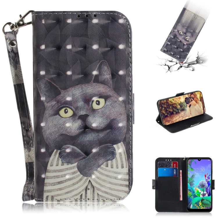Funda de Cuero LG Q60 con Tapa Horizontal, Dibujo 3D Gato, Soporte y Ranuras para Tarjetas