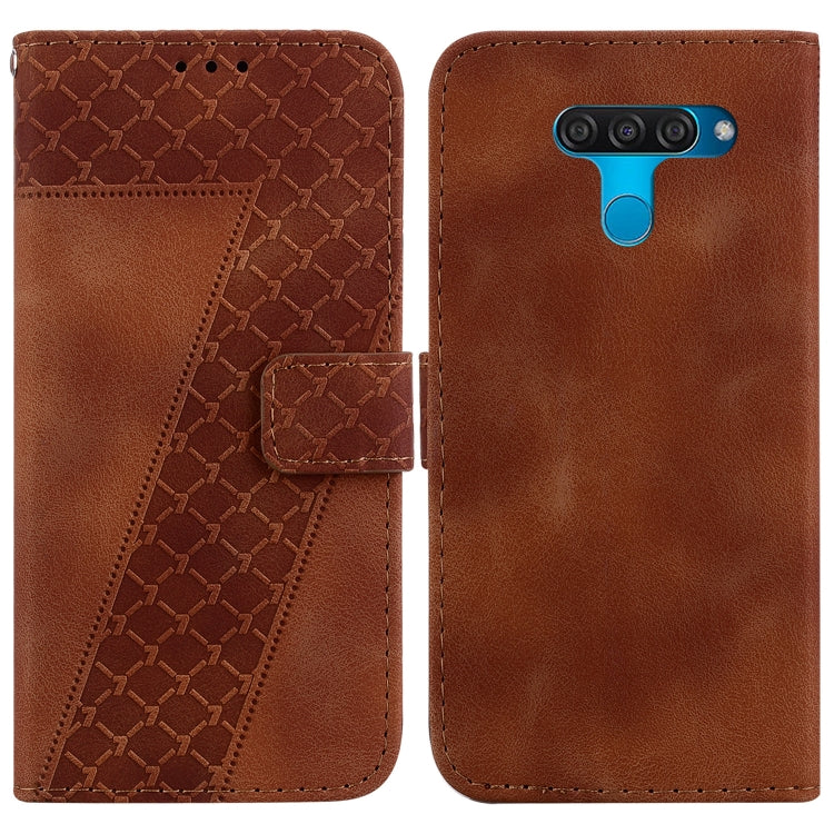 Funda de Cuero En Relieve en Forma de 7 para LG K52 / K62 / Q52 (Marrón)