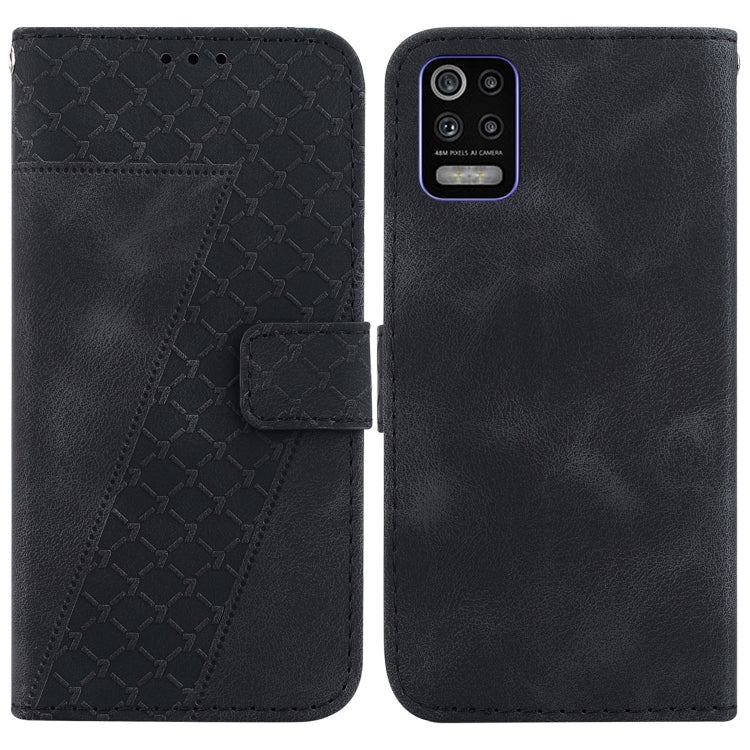 Funda de Cuero En Relieve en Forma de 7 para LG K52 / K62 / Q52 (Negro)