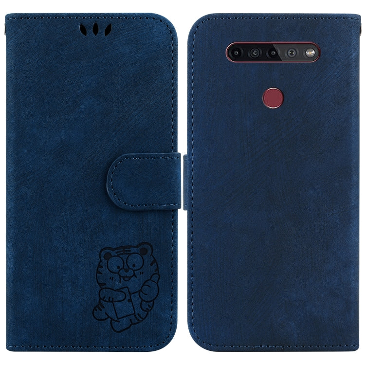 Funda para Teléfono LG K61 de Cuero con Relieve Little Tiger (Azul Oscuro)
