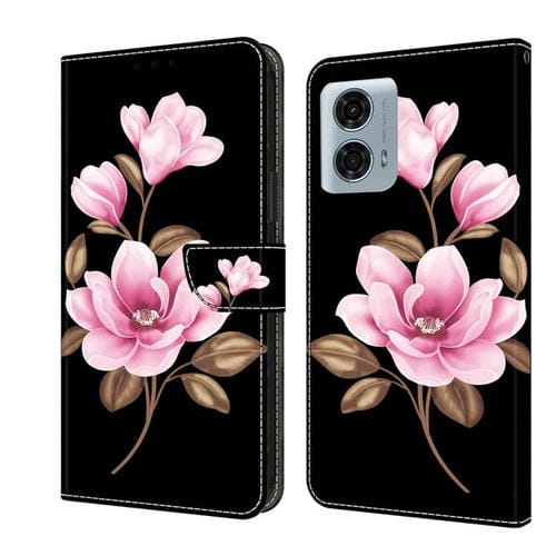 Funda de Cuero pintada a mano para Motorola Moto G24 Power (Flores Negras)