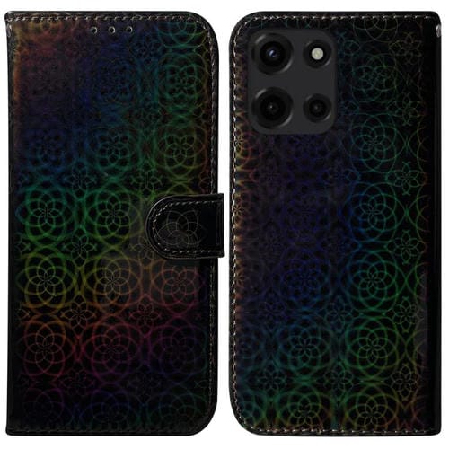Funda de Cuero con Relieve en Forma de Siete para Motorola Moto G05/E15 (Negra)