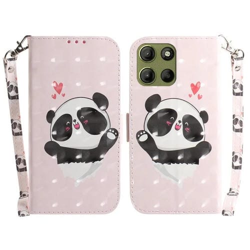Funda de Cuero con Tapa 3D para Motorola Moto G15 (Panda con Forma de Corazón)