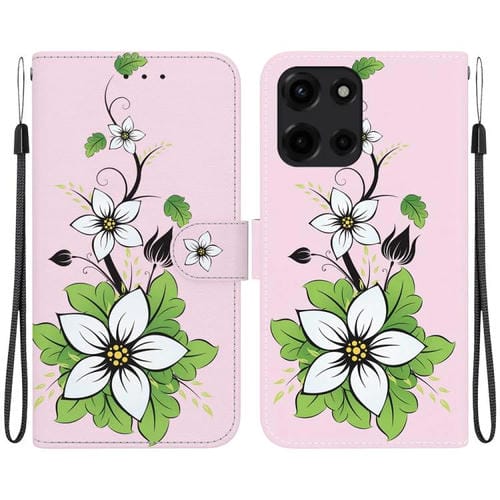 Funda de Cuero Motorola Moto G05/E15 con Dibujo de Colores y Textura de Cristal (Lily)
