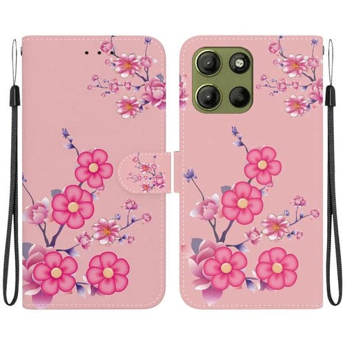 Funda de Cuero para Motorola Moto G15 con Dibujo de Colores y Textura de Cristal (Flor de Ciruelo)