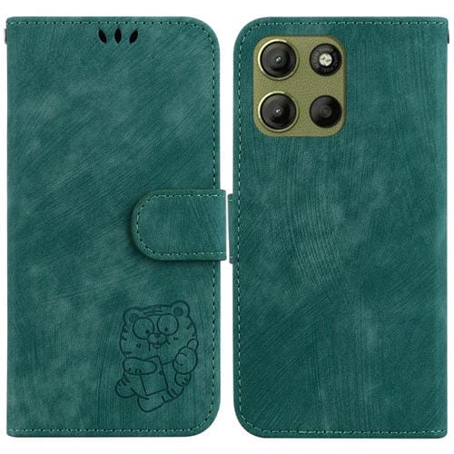 Funda de Cuero con Relieve de Tigre Pequeño para Motorola Moto G 5G (2025) (Verde)
