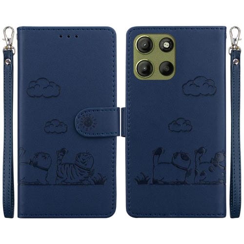 Funda de Cuero con Relieve de Tigre para Motorola Moto G 5G (2025) (Azul Oscuro)