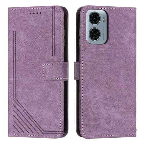 Funda de Cuero Motorola Moto G05 con Diseño de Rayas y Tacto Sedoso (Morado)
