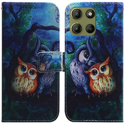 Funda de Cuero con Tapa Motorola Moto G15 Dibujo Búho Pintura al Óleo (Colorido)