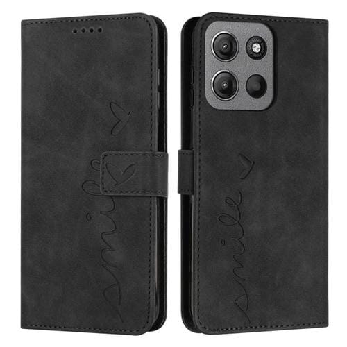 Funda de Piel con Relieve de Corazón para Motorola Moto G15 con Cordón Largo (Negro)