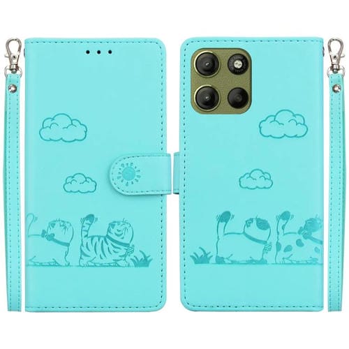 Funda de Cuero Motorola Moto G 5G (2025) con Estampado de Tigre (Verde)