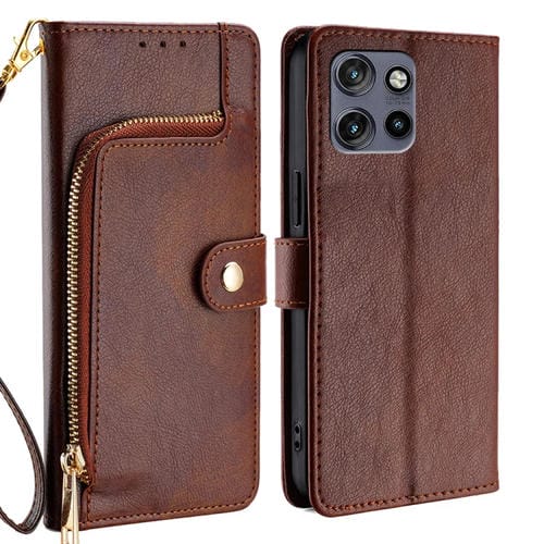 Funda de Cuero con Cremallera para Motorola Edge 50 Neo 5G (Marrón)