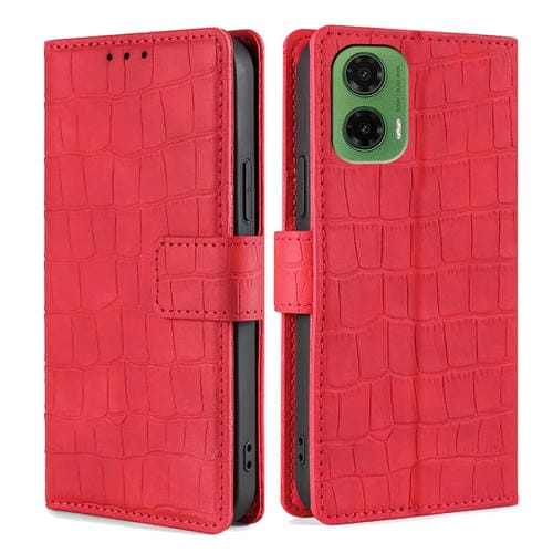 Funda de Piel con Cierre Magnético para Motorola Moto G35 5G (Rojo) Diseño Cocodrilo