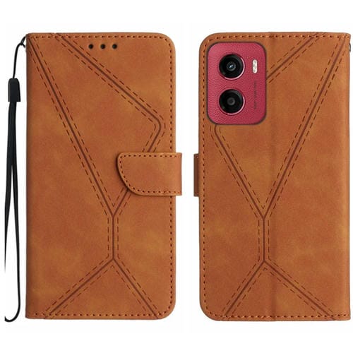 Funda de Cuero con Relieve y Costuras para Motorola Moto G05 (Marrón)