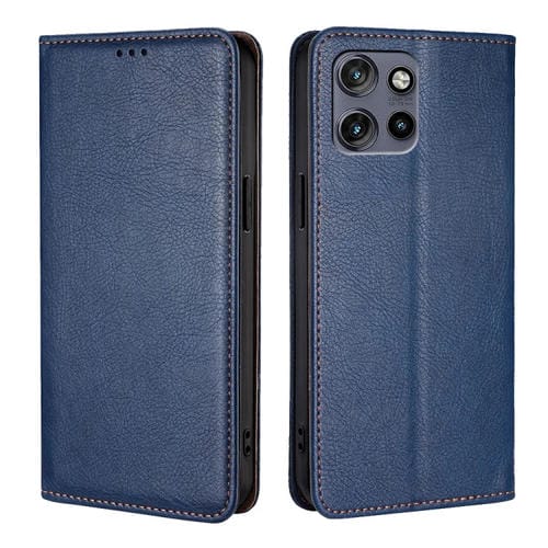 Funda de Cuero Magnética para Motorola Edge 50 Neo 5G con Acabado Brillante y Aceite Sólido (Azul)