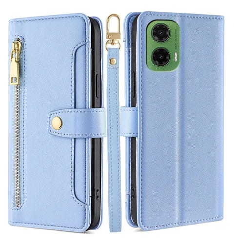 Funda de Cuero con Cremallera y Textura de Oveja para Motorola Moto G35 5G (Azul)