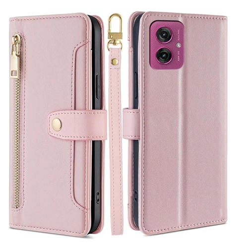 Funda Cuero Tipo Billetera Motorola Moto G55 5G con Cremallera y Textura Oveja (Rosa)
