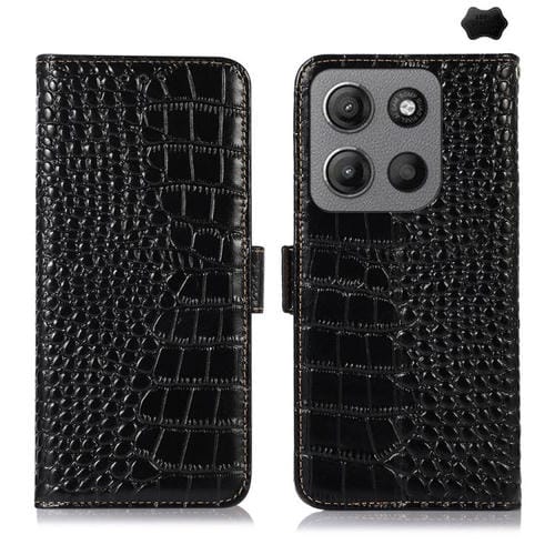 Funda para Teléfono Motorola Moto G15 4G/G05 con Piel de Vaca y Cocodrilo (Negra)