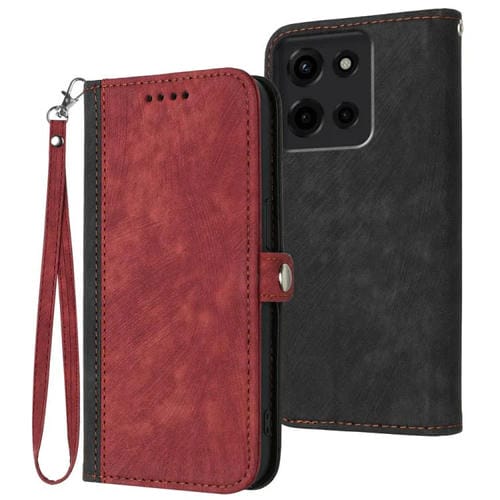 Funda de Cuero para Motorola Moto G 2025 con Correa de Mano y Hebilla Lateral Doble (Rojo)