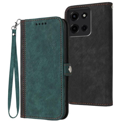 Funda de Cuero para Motorola Moto G 2025 con Correa de Mano y Hebilla Lateral Doble (Verde Oscuro)