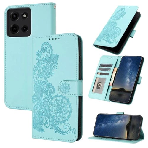 Funda de Cuero con Tapa para Motorola Moto G 2025 con Diseño Flor de Datura en Relieve (Azul)