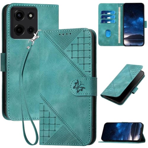 Funda de Cuero Rfid para Motorola Moto G05 con Relieve en Panal (Verde Pavo Real)