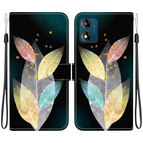 Funda de Cuero Motorola Moto E13 con Dibujo y Textura de Cristal (Hojas de Colores)
