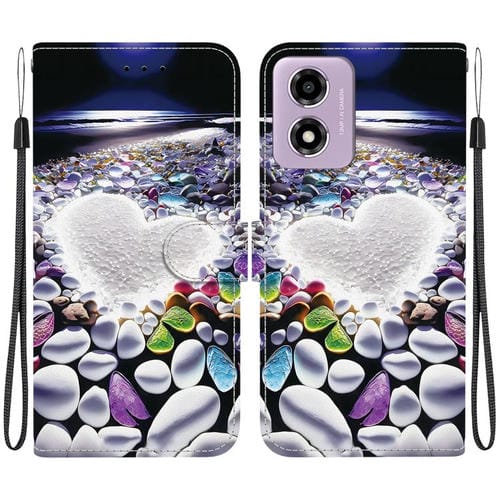 Funda de Cuero para Motorola Moto G04S/E14 con Dibujo de Colores y Textura de Cristal (Corazón)