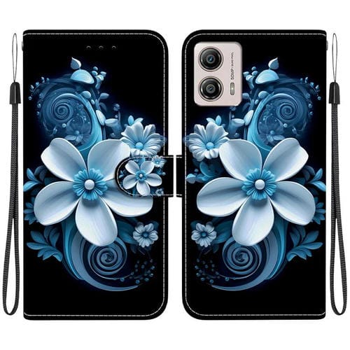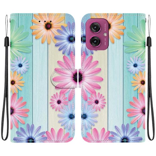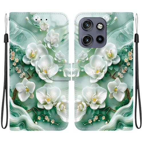 Funda de Cuero para Motorola Moto G55 con Dibujo de Colores y Textura de Cristal (Flores de Jade)