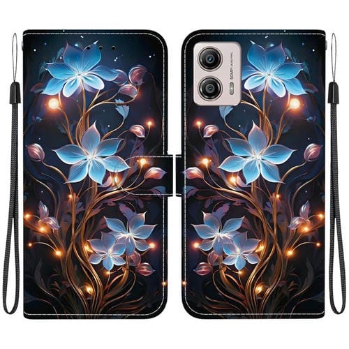 Funda de Cuero Motorola Moto G13/G23/G53 con Dibujo y Textura de Cristal (Flor de Linterna Pequeña)