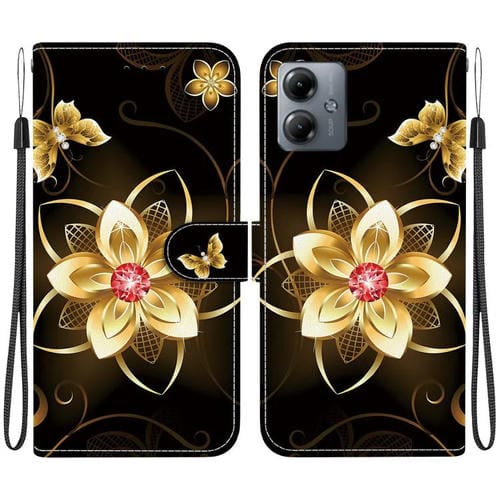 Funda de Cuero para Motorola Moto G14 con Dibujo de Colores y Textura de Cristal (Flor Dorada)