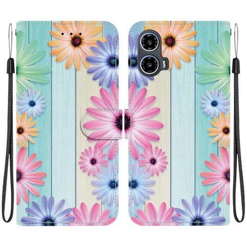 Funda de Cuero con Dibujo y Textura Cristal para Motorola Edge 50 Neo 5G (Girasoles)