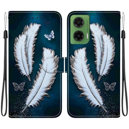 Funda de Cuero con Dibujo y Textura de Cristal para Motorola Moto G35 (Plumas de Mariposa Blancas)