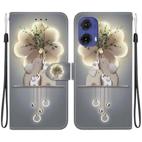 Funda de Cuero Motorola Moto G85 con Dibujo de Colores y Textura de Cristal (Elefantes)