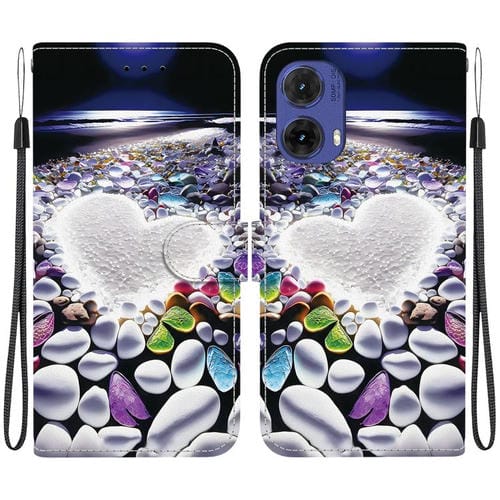 Funda de Cuero para Motorola Edge 50 Pro con Dibujo de Colores y Textura de Cristal (Corazón)